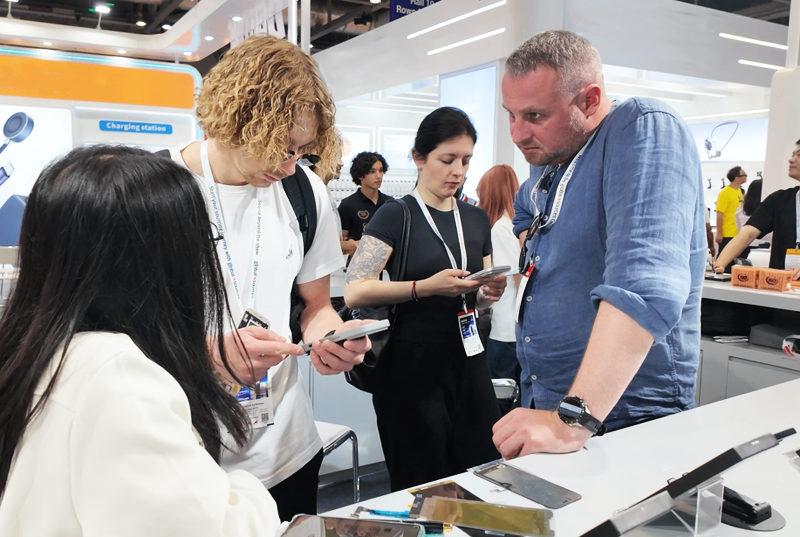 Four days – not long, not short. From morning till evening, our booth was busy with people: wholesalers from India and Vietnam, small repair chain buyers from Europe, trading companies from the Middle East and South America. They sat down, picked up our screen samples, turned them over and over to check the flex cables, test the touch, compare color differences, and then asked a bunch of very practical questions.